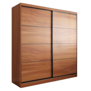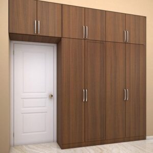 Brown Engineered Wood Wardrobe Armoire with Sliding Doors, Side Storage & Top Cabinets – Modern Wardrobe Closet