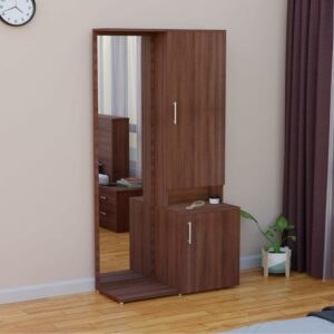 Contemporary Wooden Dressing Unit with Mirror, Cabinets & Footrest