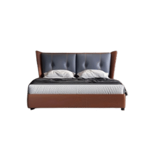 Luxury Leather Upholstered King Size Bed with Tufted Headboard