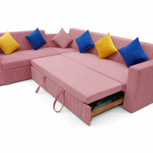 Pink L-Shape Sofa Bed with Pull-Out Design – Modern Convertible Corner Sleeper Sofa