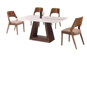 Modern Wooden Dining Table Set with 4 Chairs – Minimalist Marble Finish Top