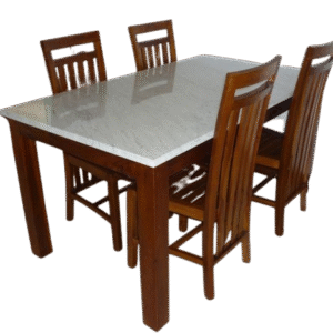Teak Dining Table with Marble Top – Durable 4-Seater Wooden Dining Set