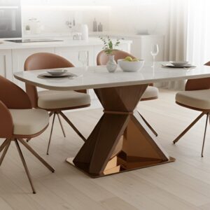 Luxury Marble Top Dining Table Set with 4 Padded Chairs – Modern Brown Finish