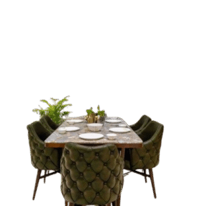 Luxury Green Velvet Dining Chair Set with Marble Top Table – 6 Seater