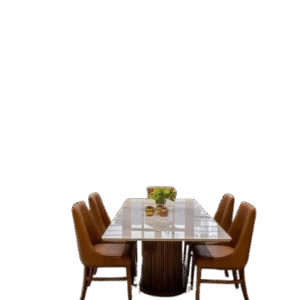 6-Seater Wooden Dining Set with Marble Top – Durable & Stylish Dining Table and Chair Set