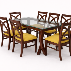 Glass Top 6 Seater Dining Set with Wooden Chairs – Modern Dining Table Set Manufacturer in Ahmedabad