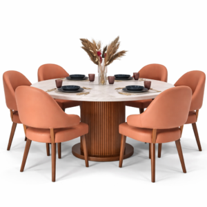 Luxury Marble Top Dining Table Set with 6 Leather Chairs – Modern Wooden Base