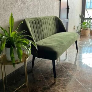 Modern Velvet Green Loveseat with Vertical Channel Tufting