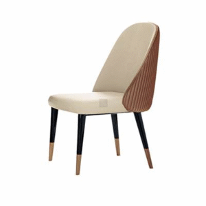 Modern Two-Tone Dining Chair with Ribbed Backrest and Gold-Tipped Black Legs