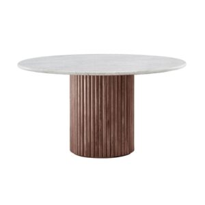 Modern Round Marble Dining Table with Fluted Wood Base — Durable, Stylish & Spacious