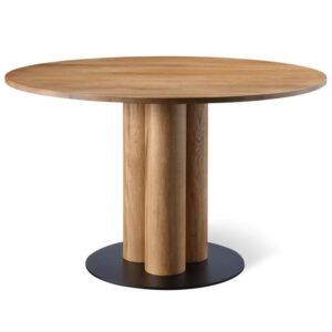 Modern Round Wooden Dining Table with Slatted Pedestal Base