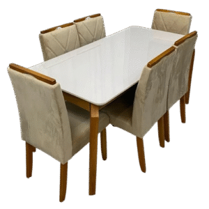Modern Wooden Dining Table Set with 4 Chairs – Minimalist Marble Finish Top