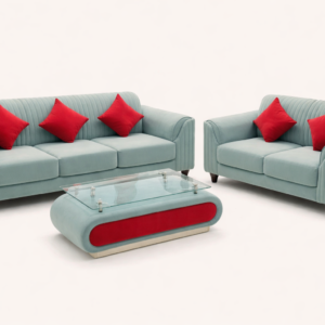 Modern Teal L-Shaped Sofa Set with Center Table