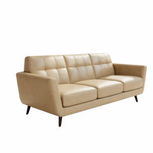 Contemporary Beige Leather 3-Seater Sofa with Tufted Back & Solid Wood Legs – Modern Living Room Couch