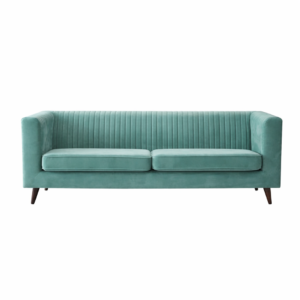 Mid-Century Modern Teal Velvet Sofa with Channel Tufted Back