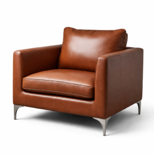 Modern Brown Leather Armchair – Contemporary Accent Chair with Cushioned Seat & Metal Legs