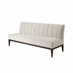 Modern Beige Upholstered Bench Sofa with Channel Tufted Back & Solid Wood Base – Contemporary Armless Couch