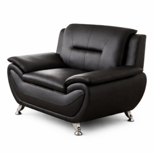 Modern Black Leather Armchair – Luxury Upholstered Accent Chair with Padded Arms & Chrome Legs