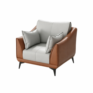Modern Two-Tone Leather Armchair – Contemporary Accent Chair with Cushions & Metal Legs