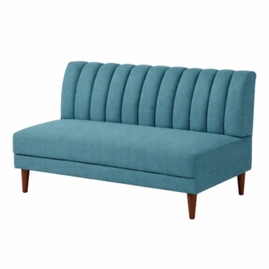 Modern Teal Upholstered Loveseat Sofa with Channel Tufted Back & Wooden Legs – Contemporary 2-Seater Couch