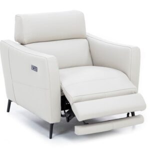 Elegant Cream Leather Power Recliner with Adjustable Headrest