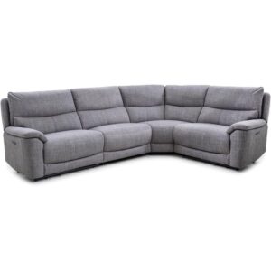 Modern Grey L-Shaped Recliner Sofa – Fabric Sectional Couch with Plush Cushions