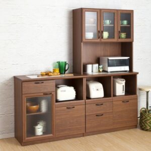 Dark Wood Multi-Compartment Kitchen Storage Cabinet with Grid Glass Doors