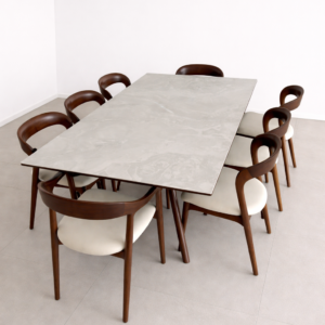 Modern 8 Seater Marble Top Dining Table Set with Wooden Chairs