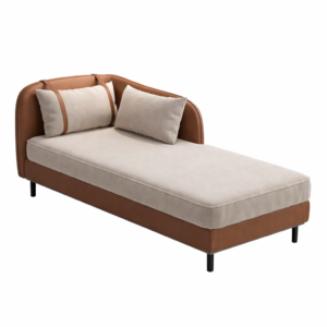 Modern Brown Faux Leather & Beige Fabric Chaise Lounge with Accent Pillows