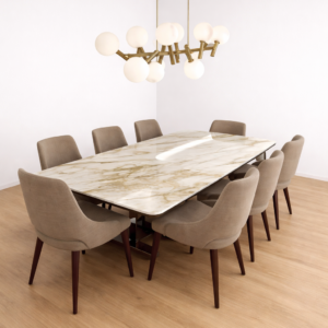 Premium 8 Seater Marble Dining Table Set with Upholstered Chairs