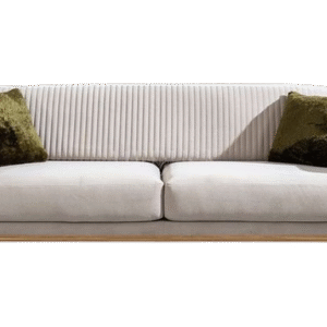 Luxury Modern 3-Seater Sofa with Gold Accents and Velvet Cushions