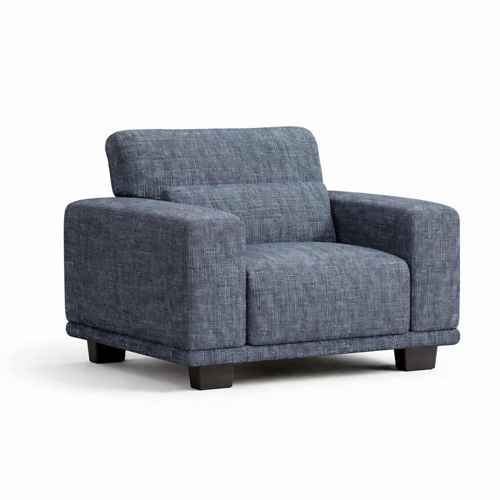 Bring comfort and style to your home with this contemporary grey fabric armchair featuring a deep cushioned seat, supportive backrest pillow, and sturdy block legs. Perfect for living rooms, bedrooms, and lounges.