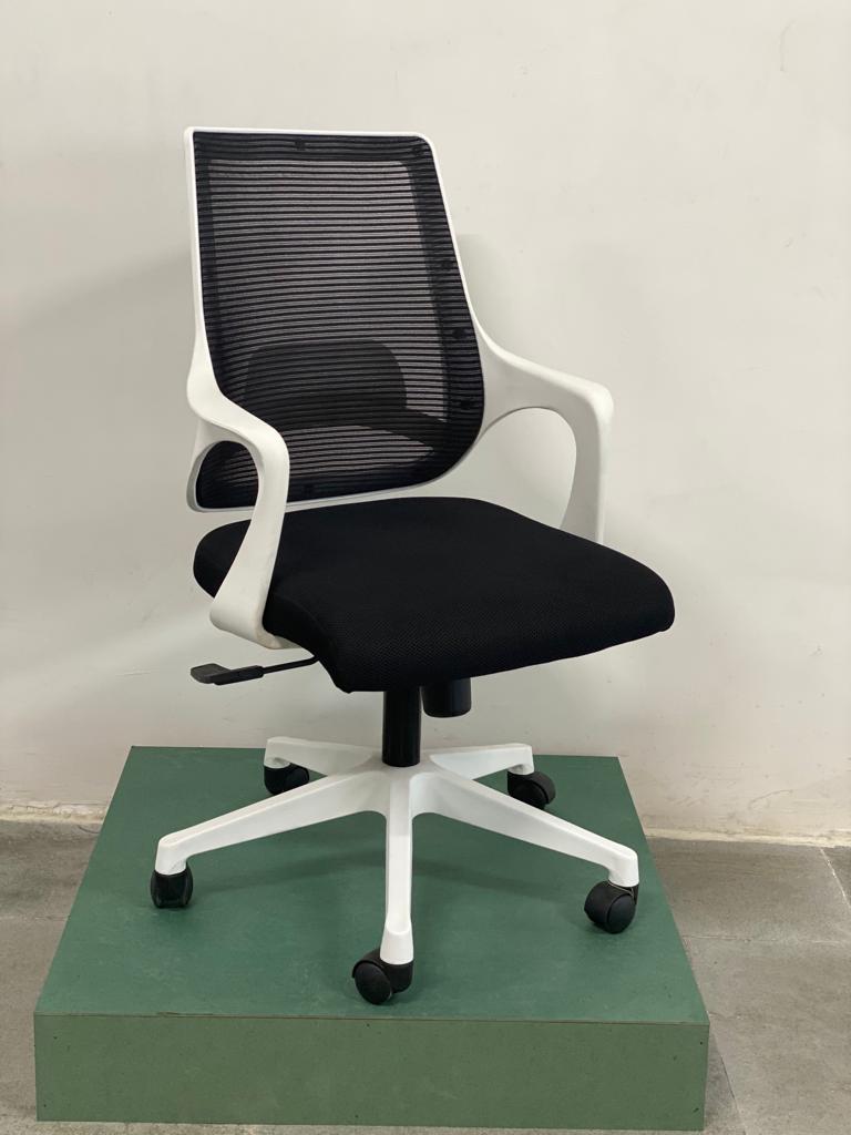 Ergonomic Mesh Office Chair – Adjustable Height with White Frame and Wheels