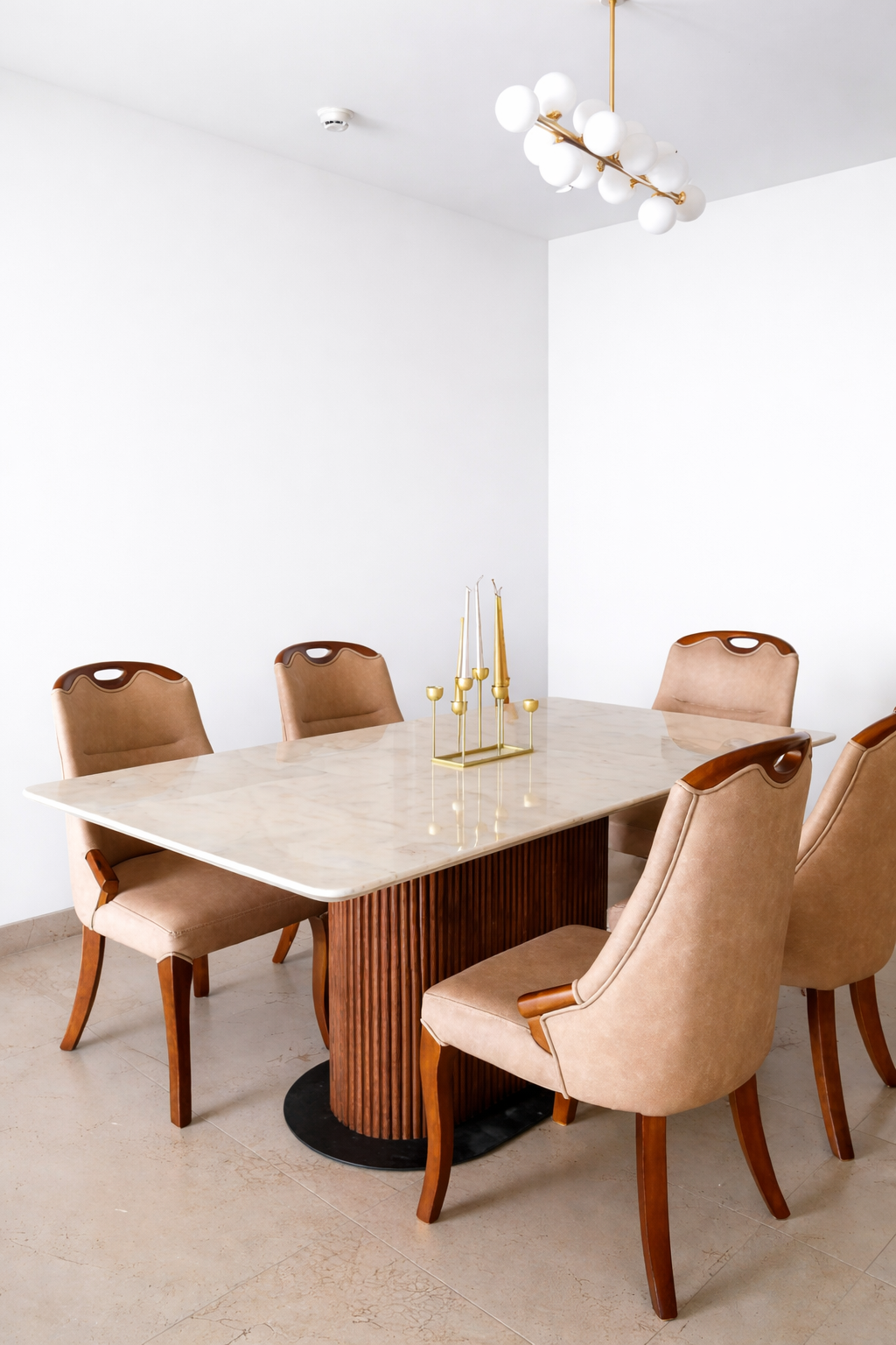 Buy premium 4 seater marble top dining table set in Ahmedabad at best price. Modern designer dining set with cushioned chairs, perfect for stylish homes. Visit us for affordable luxury dining furniture in Ahmedabad.