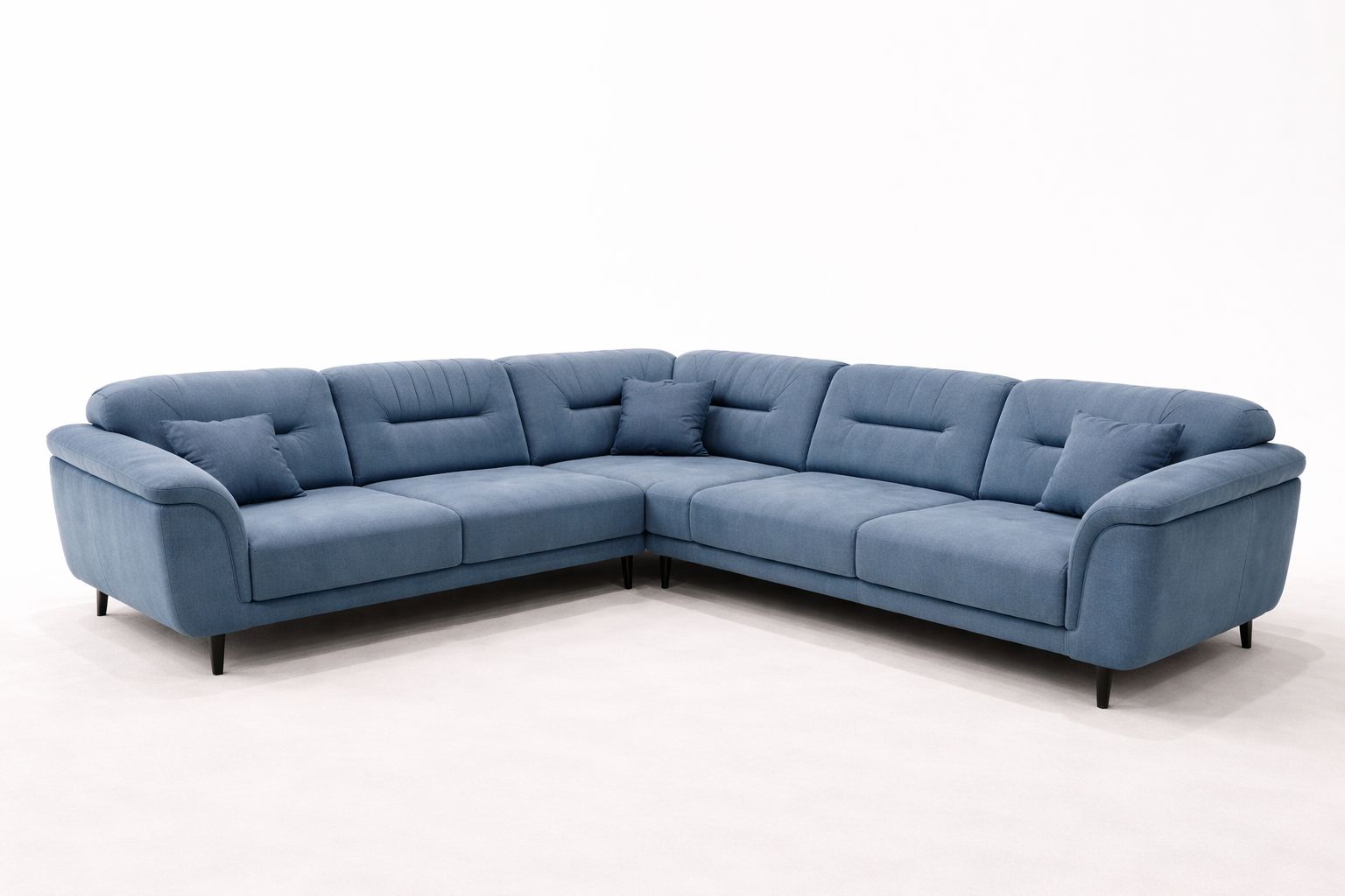 Buy premium L-shape sectional sofa set in Ahmedabad. Modern blue fabric corner sofa with plush cushions, spacious seating, and elegant design. Perfect for contemporary living rooms. Best price available.