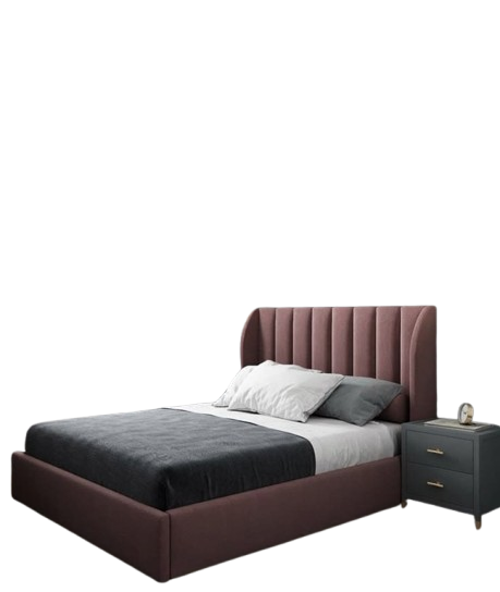 Luxury Upholstered King Size Bed with Velvet Finish and Side Table