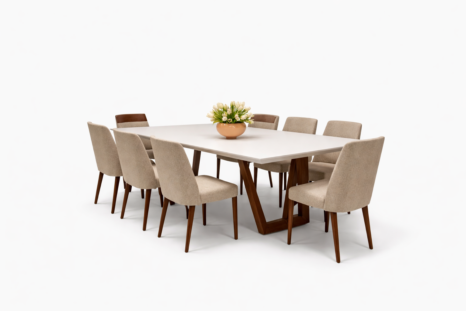Buy premium 6 seater dining set in Ahmedabad at best price. Modern wooden dining table with comfortable cushioned chairs, perfect for large families and luxury homes. Custom sizes available. Contact Krishna’s Decor Furniture today.
