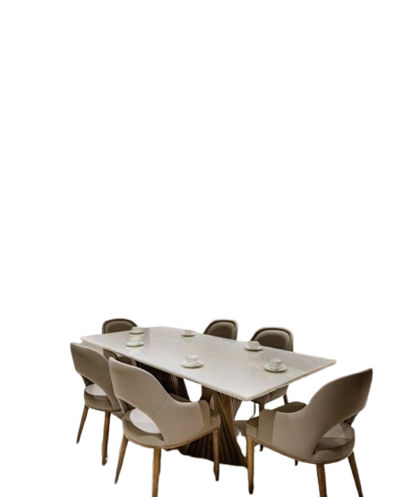 Upgrade your dining space with this modern 6-seater marble dining table set featuring elegant cushioned chairs and a stylish wooden base—perfect for contemporary homes.