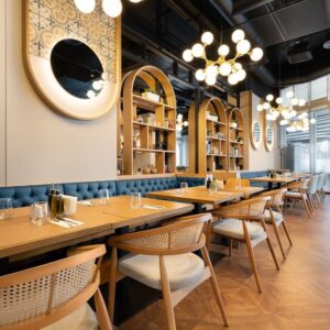 Be the first to review “Modern Cane Back Black Metal Accent Chair with Faux Leather Seat”