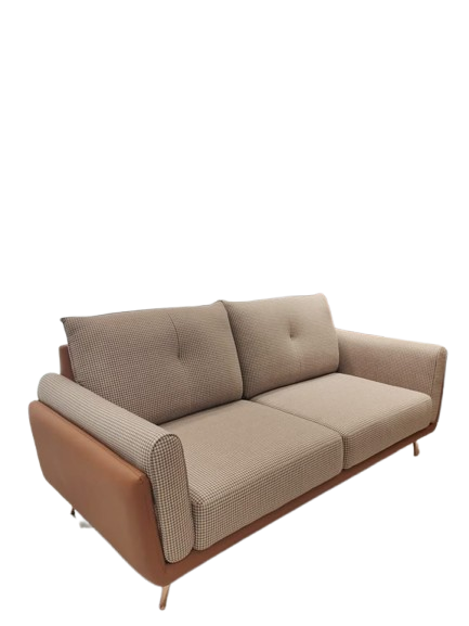 Upgrade your living room with this modern dual-tone 3-seater sofa, combining premium fabric and leatherette for a stylish, comfortable seating experience.