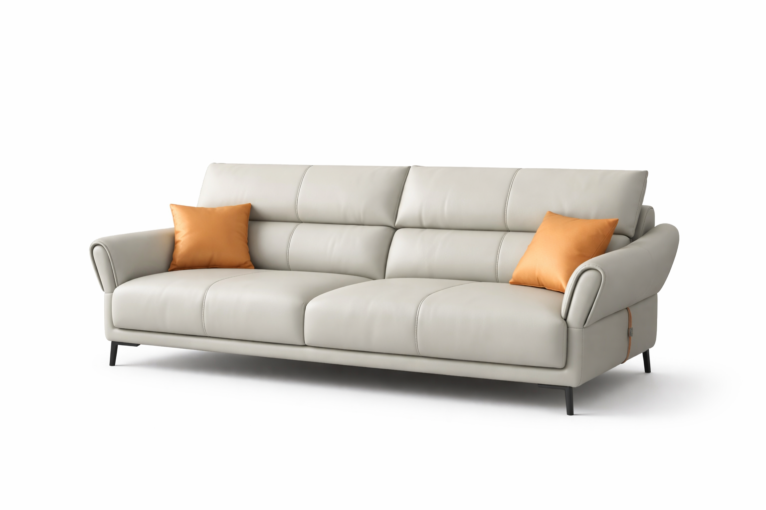 Upgrade your living room with this modern light grey leather 2 seater sofa featuring plush cushioned seating, sleek black metal legs, and stylish accent pillows. Designed for comfort, durability, and contemporary elegance.