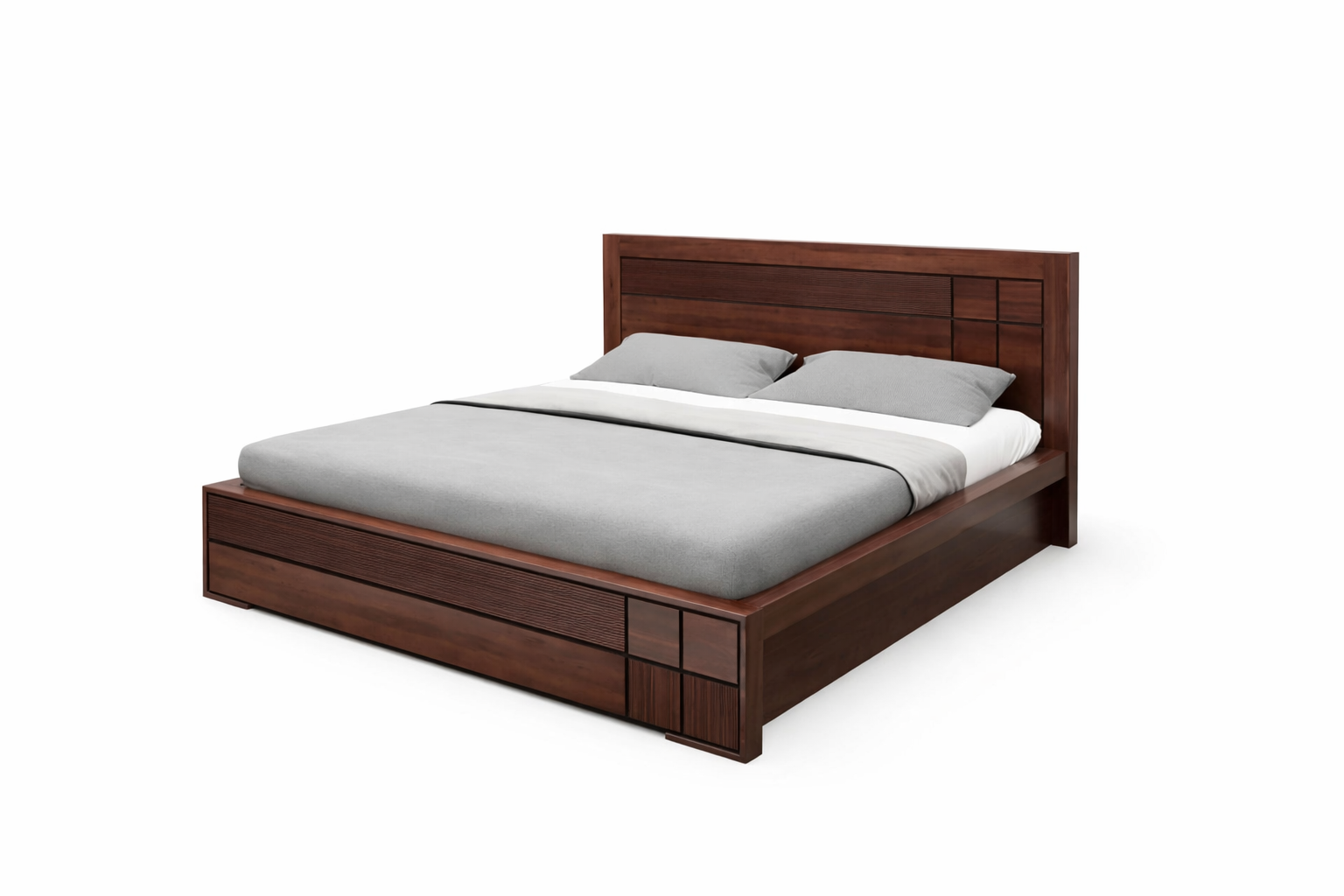 Enhance your bedroom with this modern solid wood platform bed featuring a sleek geometric panel headboard and sturdy frame construction. Crafted for durability and timeless style, it delivers a bold contemporary look with long-lasting comfort and support.
