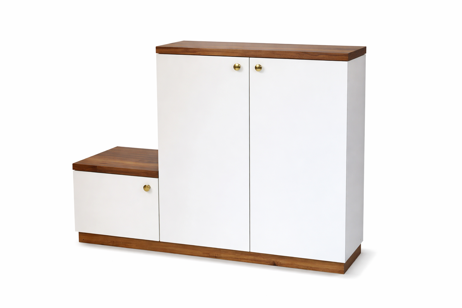 Buy a modern wooden shoe rack with storage cabinet and seating step in Ahmedabad. Stylish space-saving shoe stand with doors, perfect for entryways and living rooms. Durable wooden finish with elegant design for organized shoe storage.