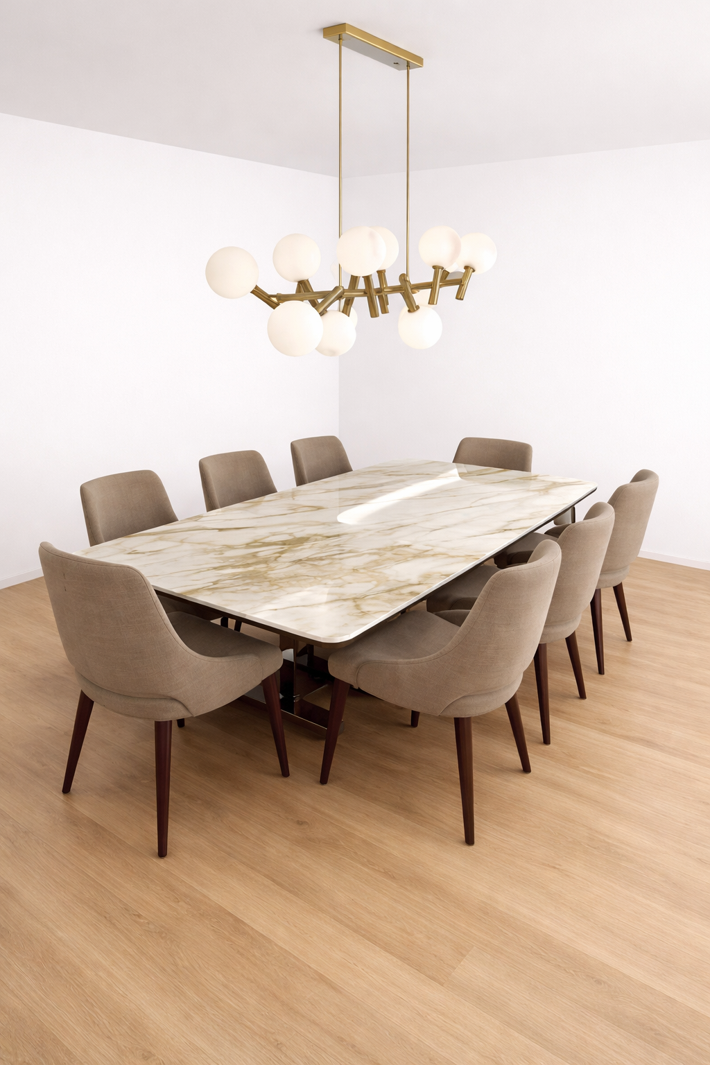 Premium 8 Seater Marble Dining Table Set with Upholstered Chairs