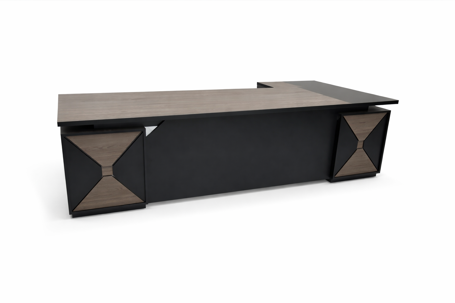 Shop premium executive boss office table in Ahmedabad with stylish side storage and modern wooden finish. Ideal for director cabin & corporate office