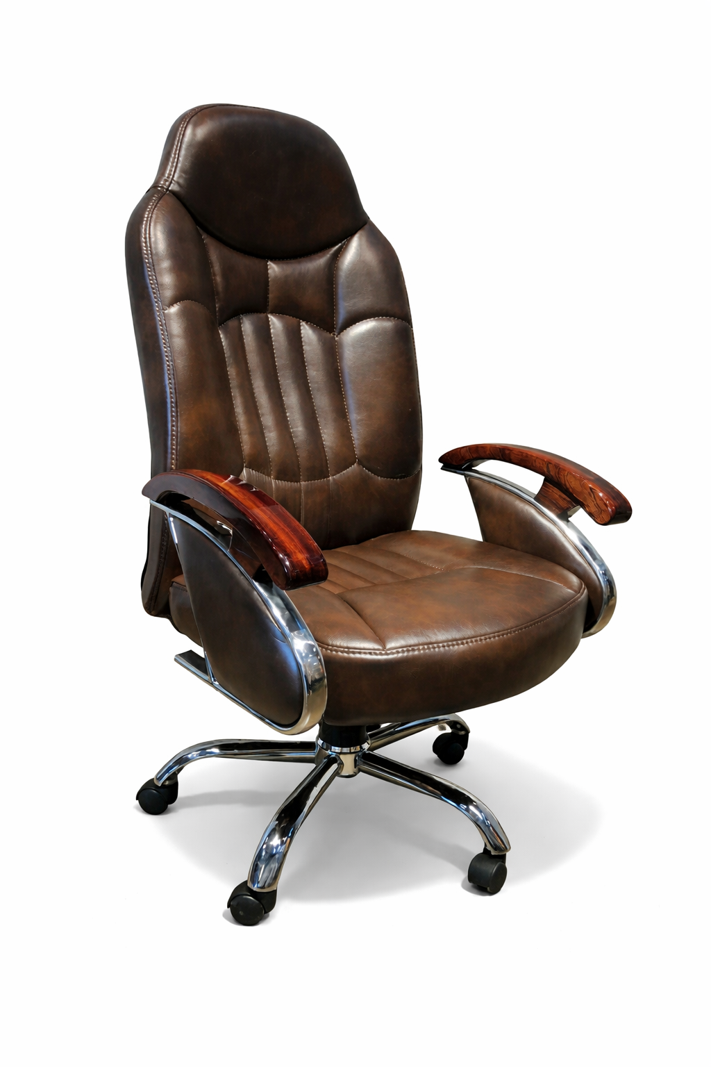 Upgrade your workspace with our premium leather executive office chair in Ahmedabad. Designed for comfort and style, this high-back ergonomic chair features cushioned seating, wooden armrests, and a durable chrome base. Trusted office chair supplier in Ahmedabad offering quality seating solutions for offices and home workspaces.