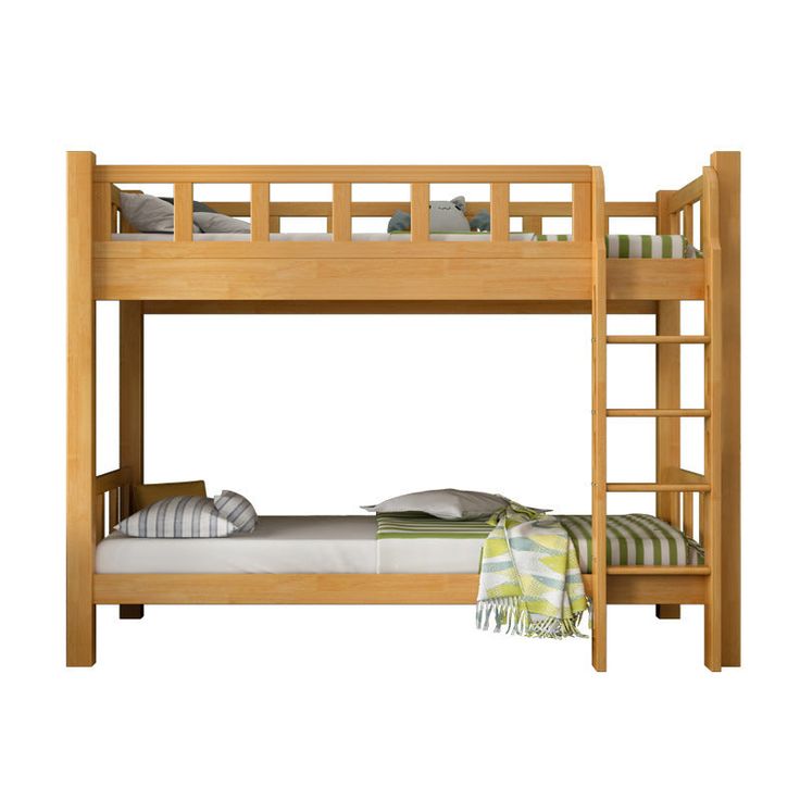 Create a warm and functional bedroom with this solid wood twin over twin bunk bed featuring sturdy construction, integrated ladder, and full-length safety guardrails. Ideal for kids’ rooms, shared bedrooms, and guest spaces.