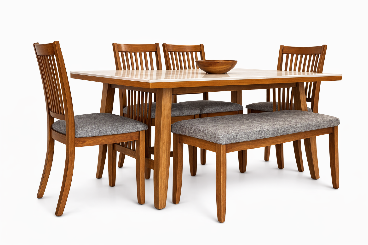Upgrade your home with a space saving premium modern dining set with 4 chairs and 1 bench in Ahmedabad. Stylish, durable & perfect for compact dining spaces.