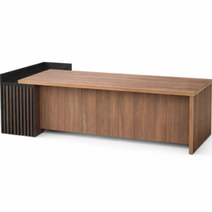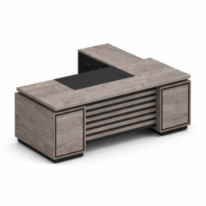 L-Shaped Executive Desk with Slatted Storage and Black Accents