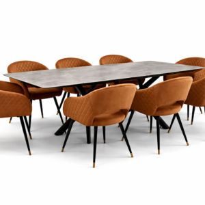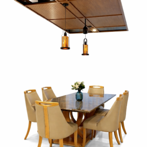 Luxury Marble Top Dining Table Set with Upholstered Chairs – Modern 8 Seater Dining Table | Top Dining Table Manufacturer in Ahmedabad, Gujarat